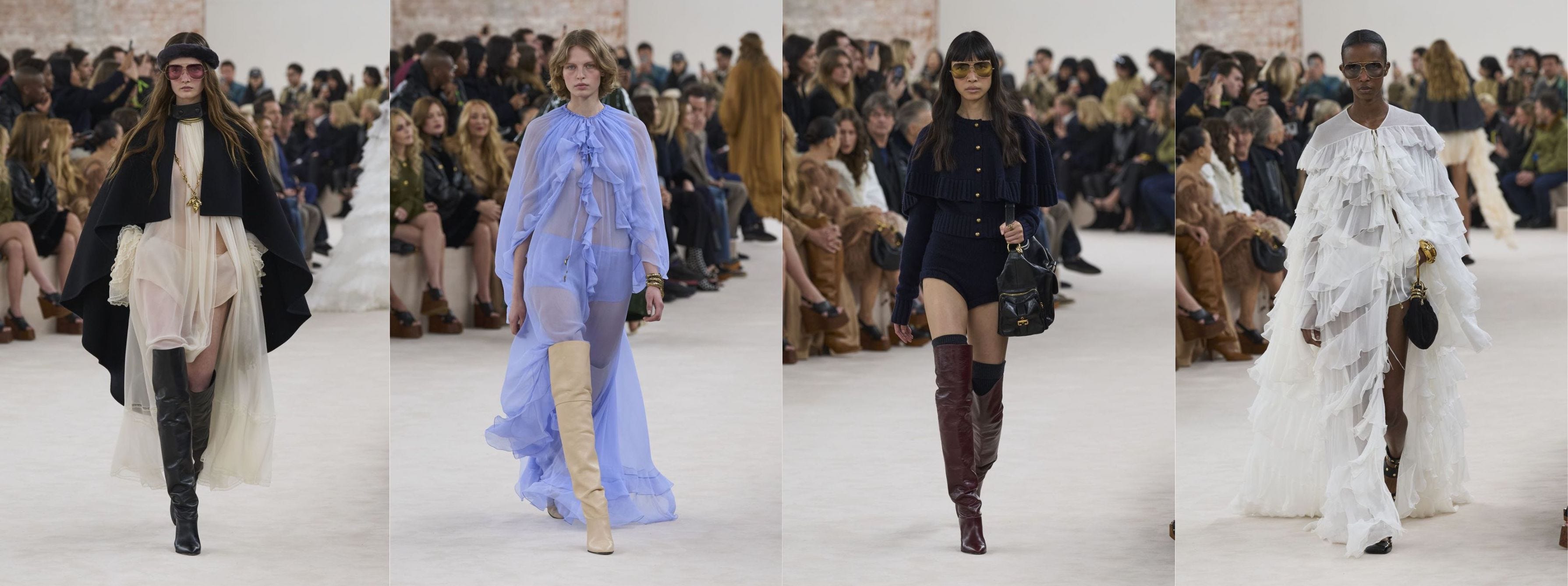 The month started on the heels of Chloé’s Winter 2024 debut led by Creative Director Chemena Kamali, the first of her collections since she took over last fall. The pieces are such a fun, joyful celebration of the feminine and feel acutely nostalgic as someone raised on Mary Kate and Ashley’s boho-chic days of yore. If Poor Things’ Bella Baxter and our favorite twins had a baby (à la Dr. Godwin Baxter), it might be this Chloé collection.